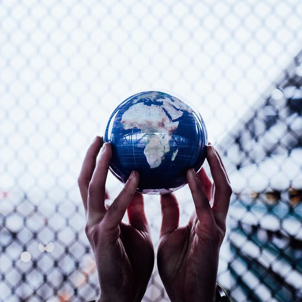 金箔のように輝く地名のレタリングが、地球儀に高級感と視認性をプラス。