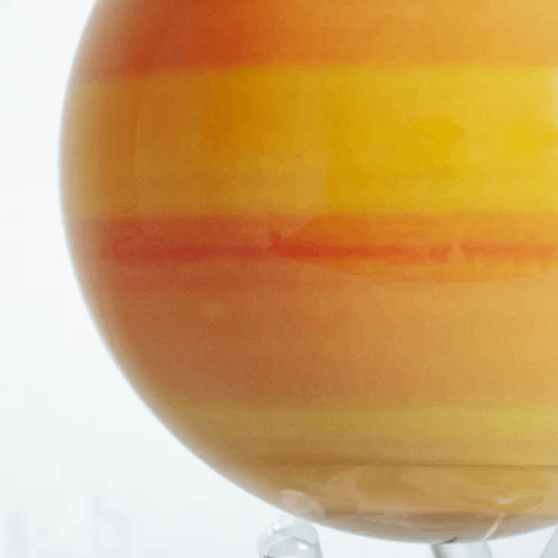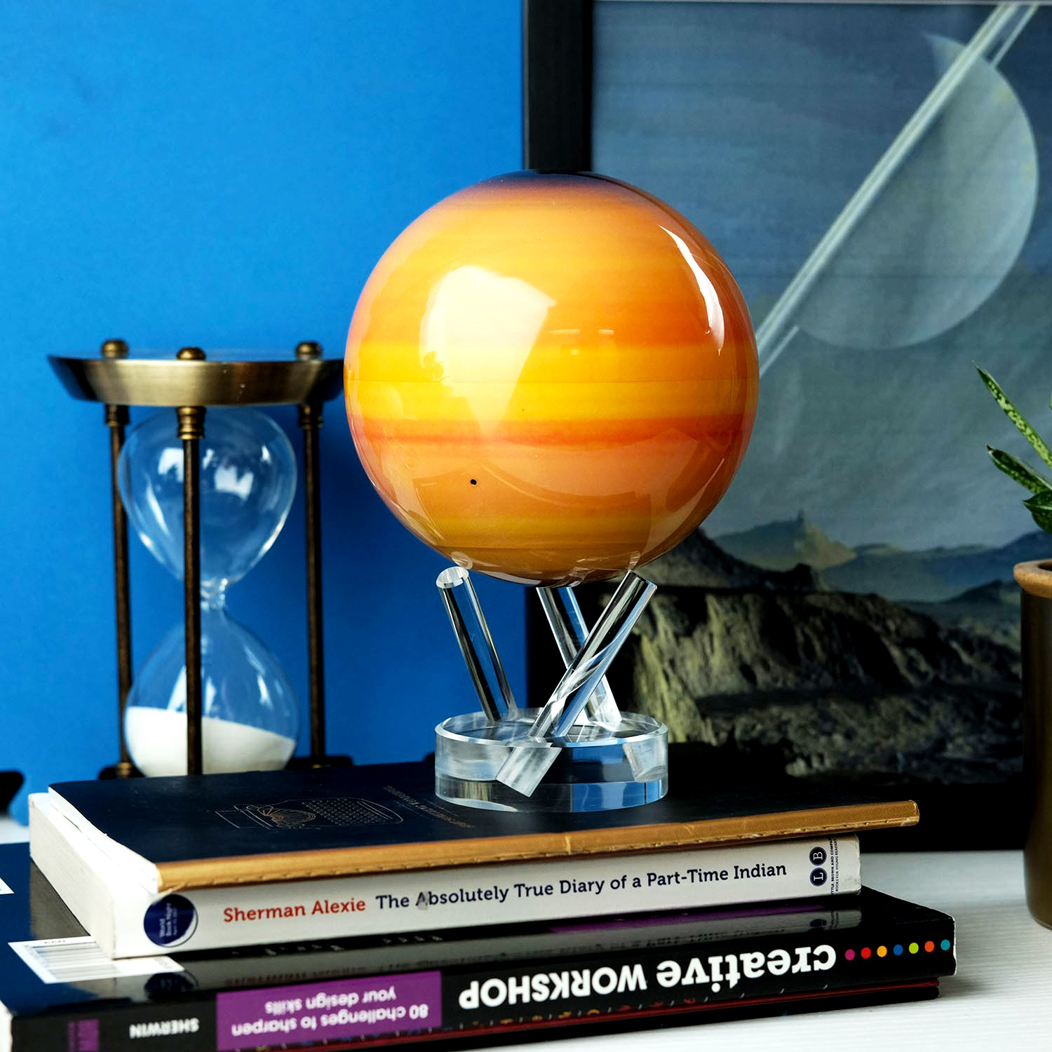 美しく広がるリング(環)と、夕焼けのように淡く幻想的な縞模様が特徴です。NASAの高解像度画像を使用して、その魅力を忠実に再現したSATURN MOVA Globeは、宇宙ファンやインテリア好きに人気のモデルです。